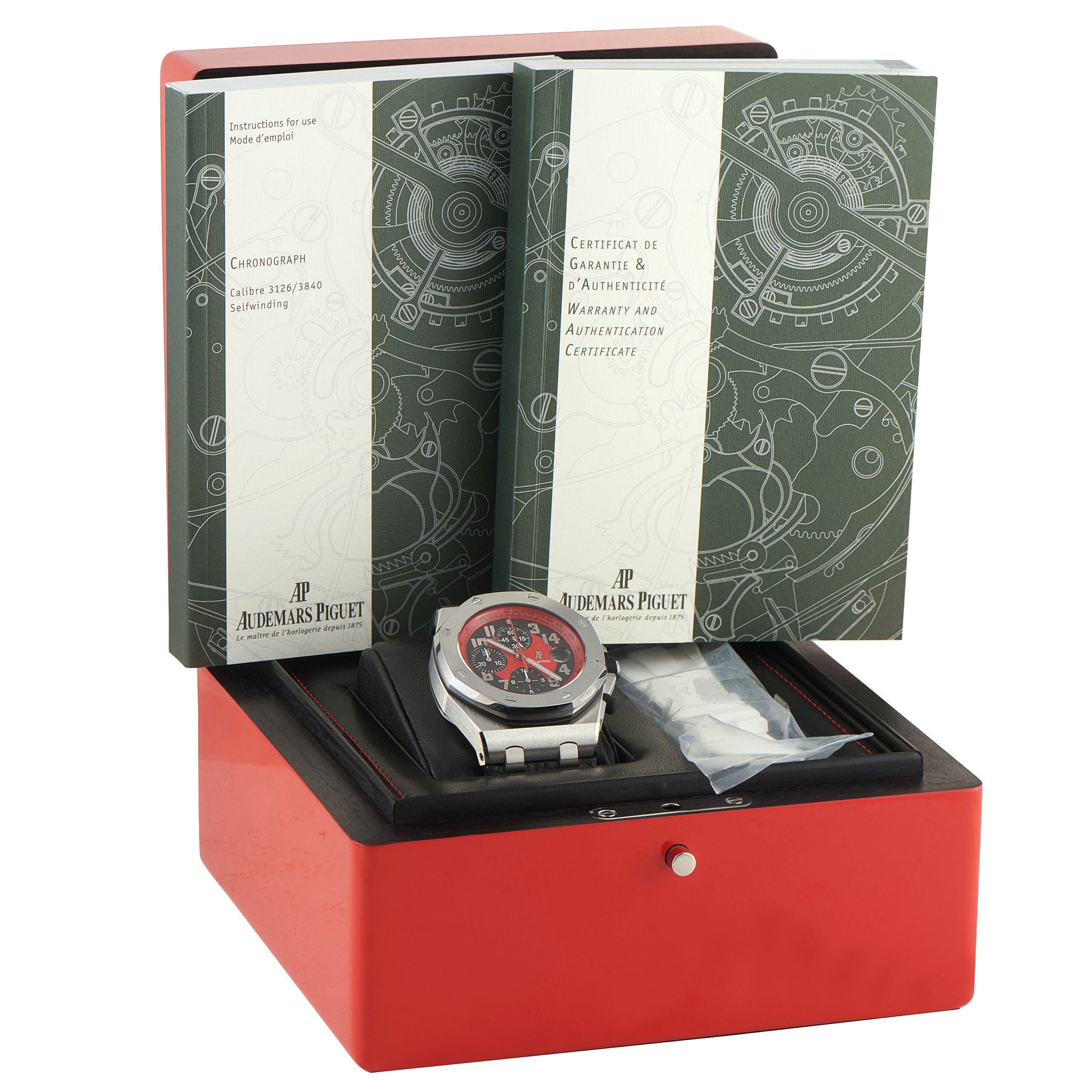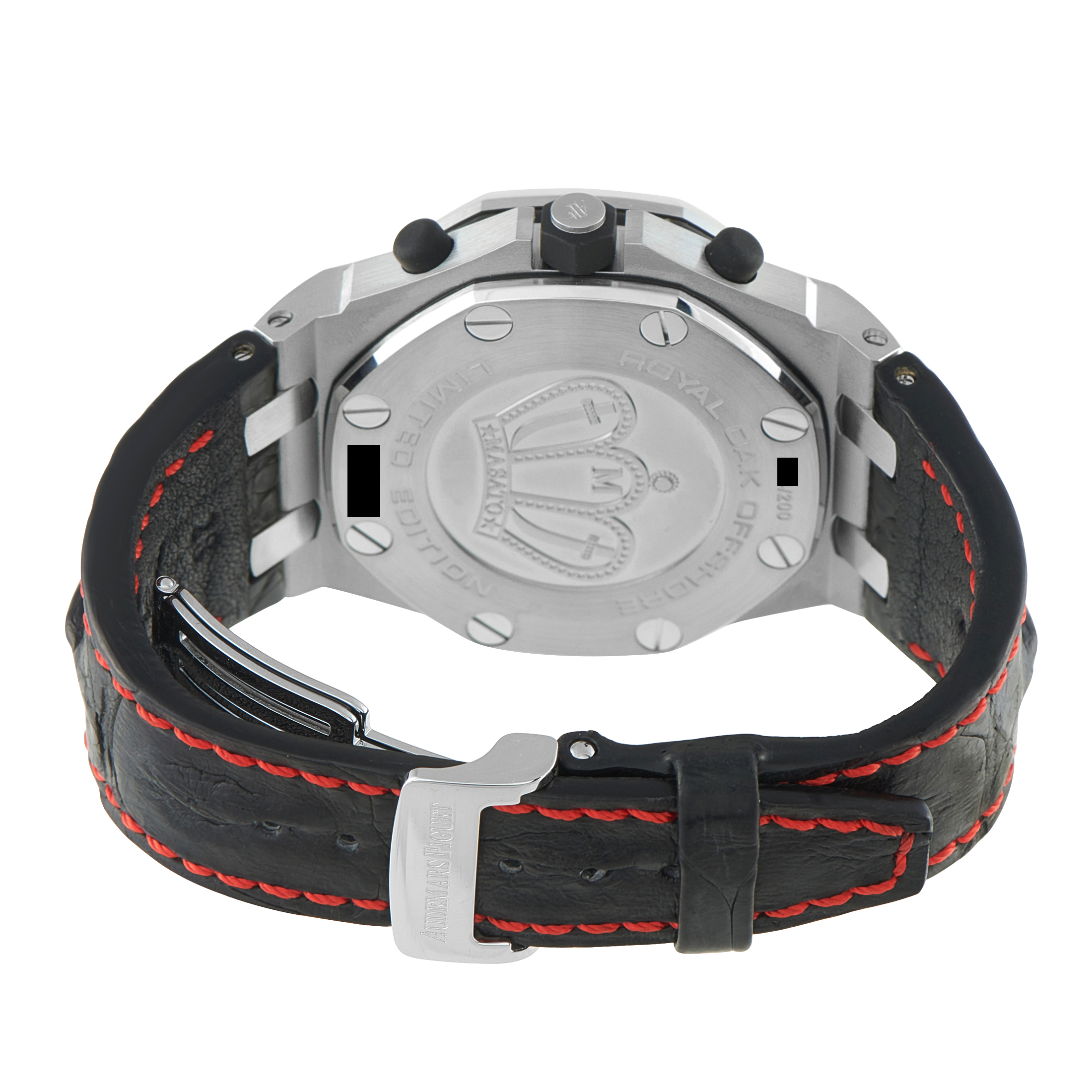 This is a pre-owned Audemars Piguet Royal Oak Offshore Limited Edition Masato Kobayashi Watch 26195ST.OO.D101CR.01. It comes complete with papers, an extra white rubber strap, and the manufacturer’s box.