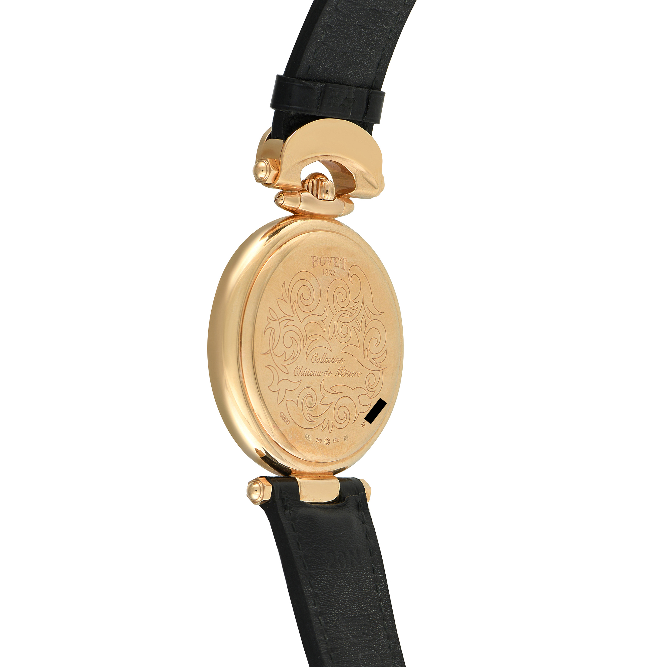 This is a pre-owned BOVET Chateau de Motiers Joaillerie Diamond and Rose Gold Ladies Watch HMS042-SD12. It comes with the manufacturer’s box and papers.