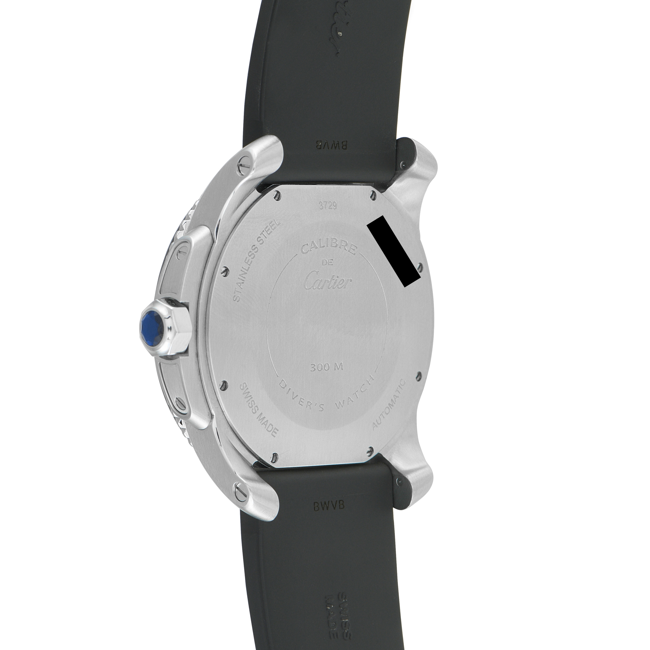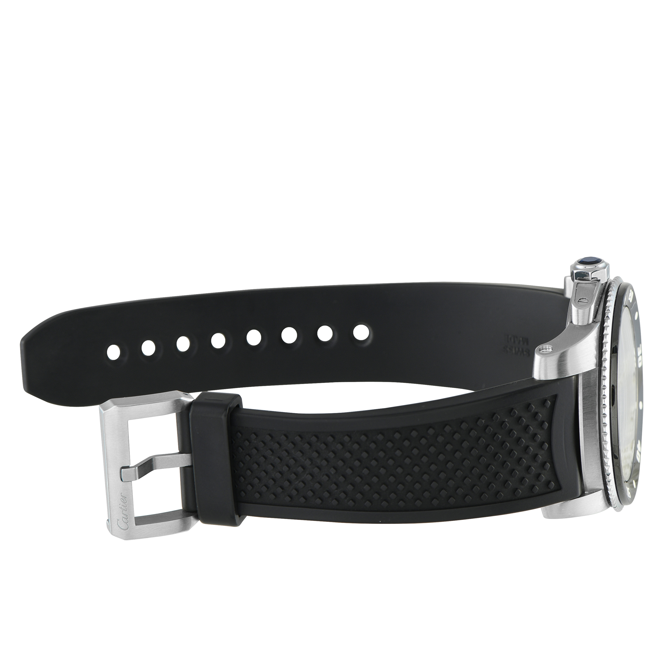 This is a pre-owned Cartier Calibre Steel Diver’s Watch W7100056. It is accompanied by a gift box.