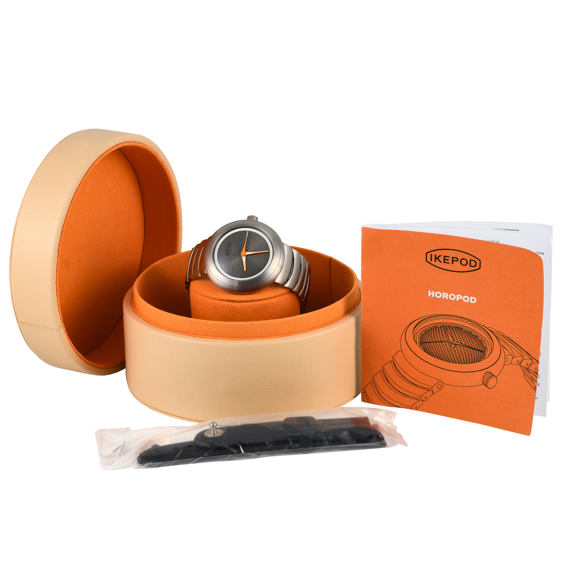 This unworn Ikepod Horopod Puxi Titanium Watch HO10 is accompanied by papers and the manufacturer’s box.