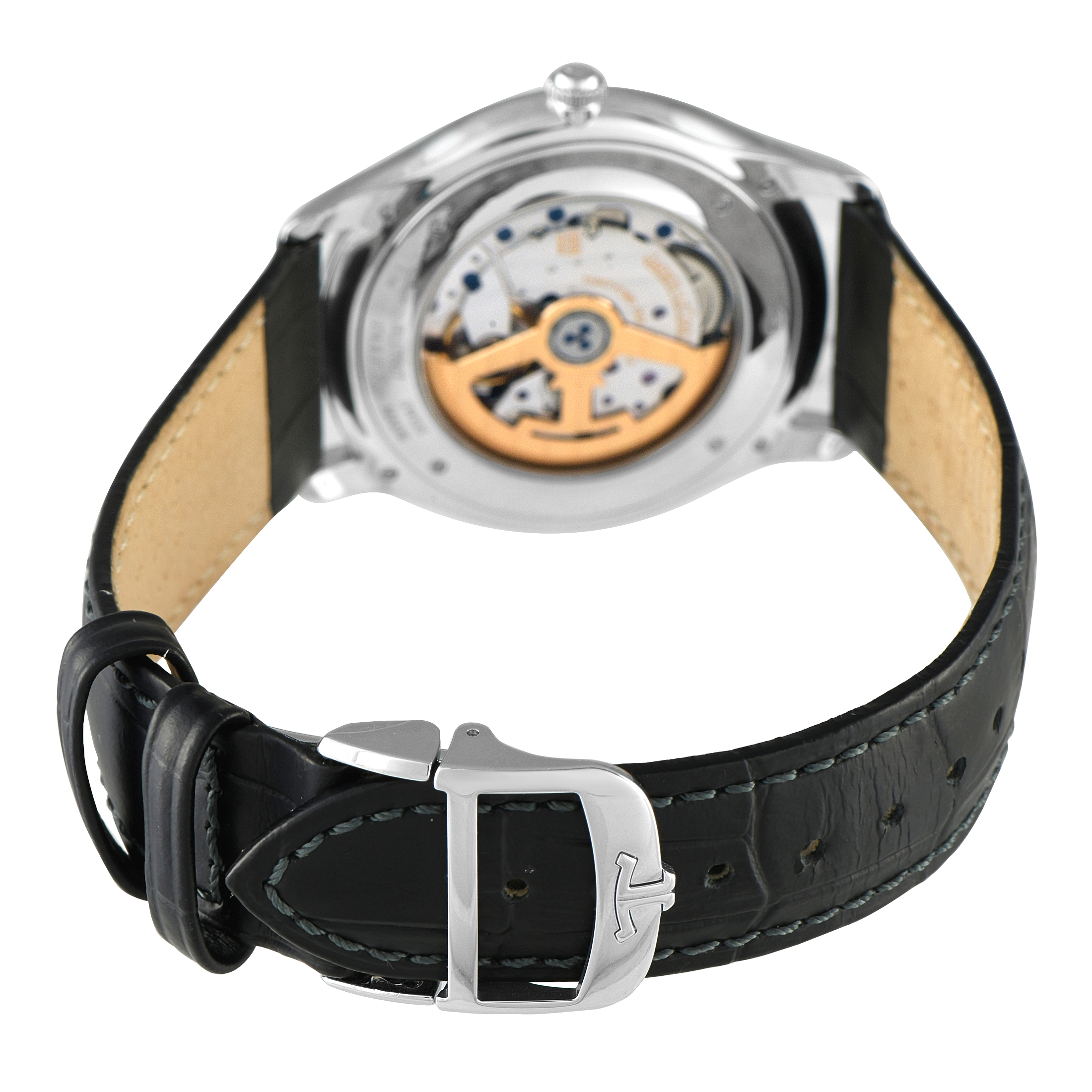 An ultra-thin watch that slips easily under a cuff and gets noticed without flash or fuss. The Master Ultra Thin Date ref.Q1288430 from Jaeger-LeCoultre, a Swiss brand long revered as the “watchmaker’s watchmaker,” is indeed a connoisseur’s choice. It features an elegant champagne dial with slim markers, polished dauphine hands, and a neatly placed date window at 6 o’clock. The watch’s face is framed by a 40mm stainless steel round case with tapered lugs, worn on a classic black leather strap. Inside, the automatic caliber 899 keeps perfect time, beating at 28800 bph, ensuring a power reserve of 38 hours.