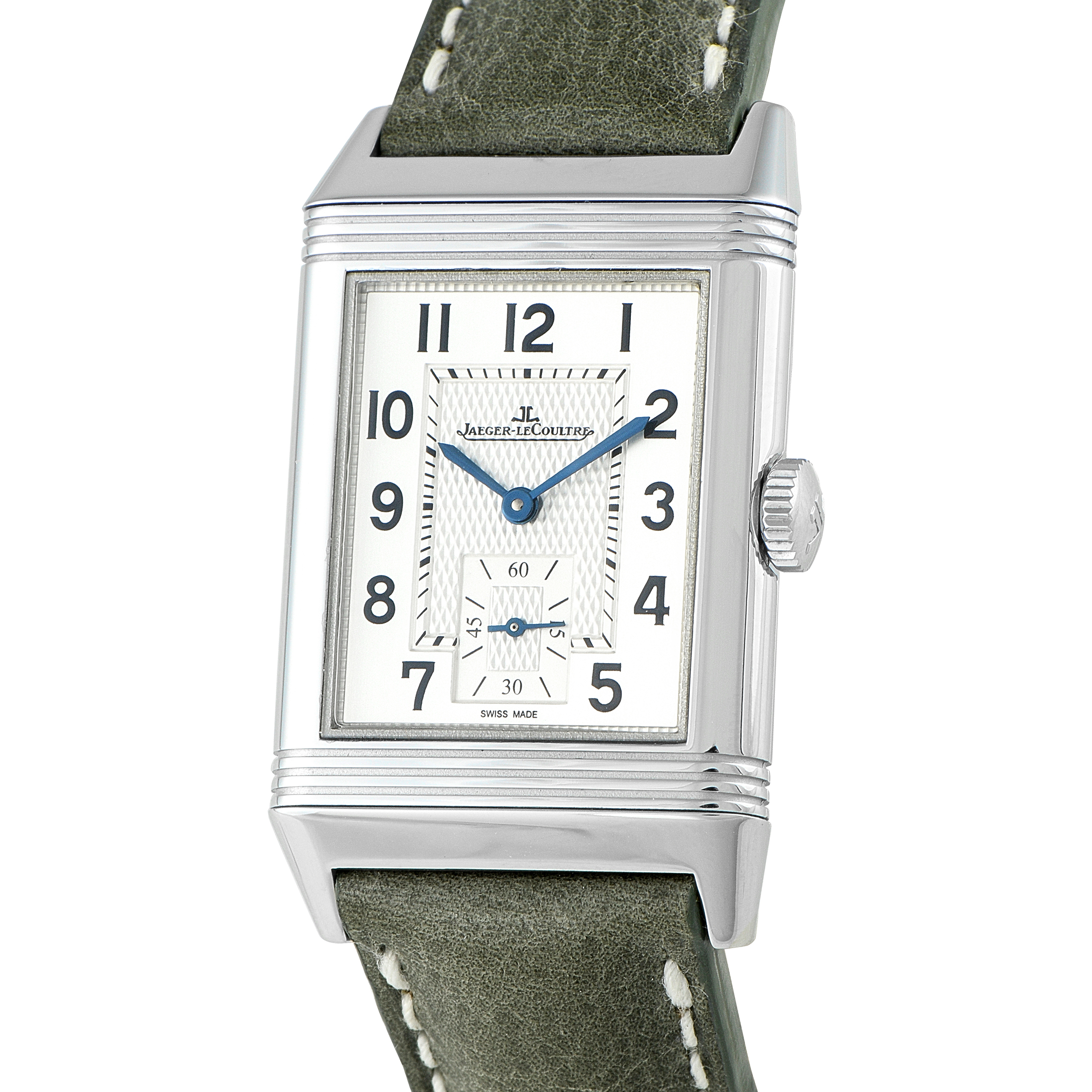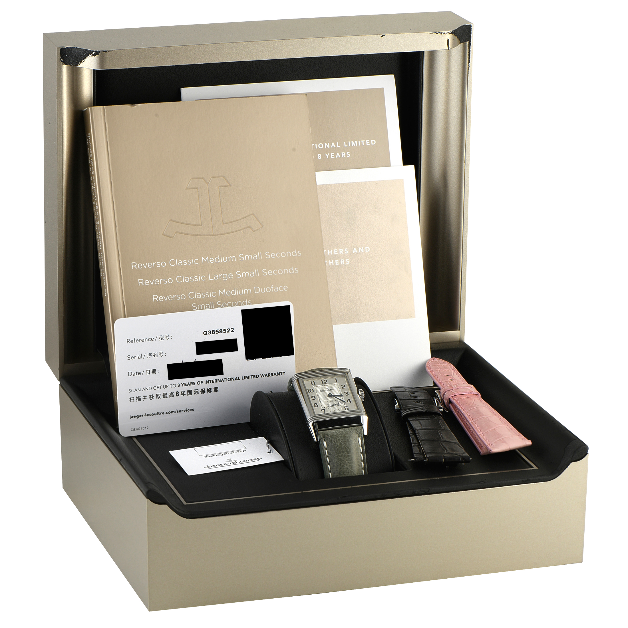 This is a pre-owned Jaeger-LeCoultre Reverso Classic Large Small Second Steel Watch Q3858522. It comes complete with papers, extra straps, and the manufacturer’s box.