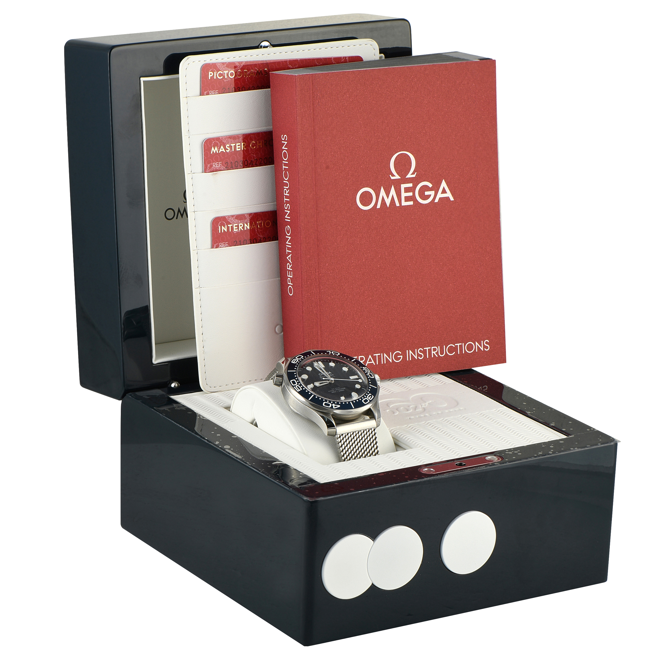 This is a pre-owned Omega Seamaster Diver 300M James Bond 60th Anniversary Watch 210.30.42.20.03.002. It comes complete with papers and the manufacturer’s box.