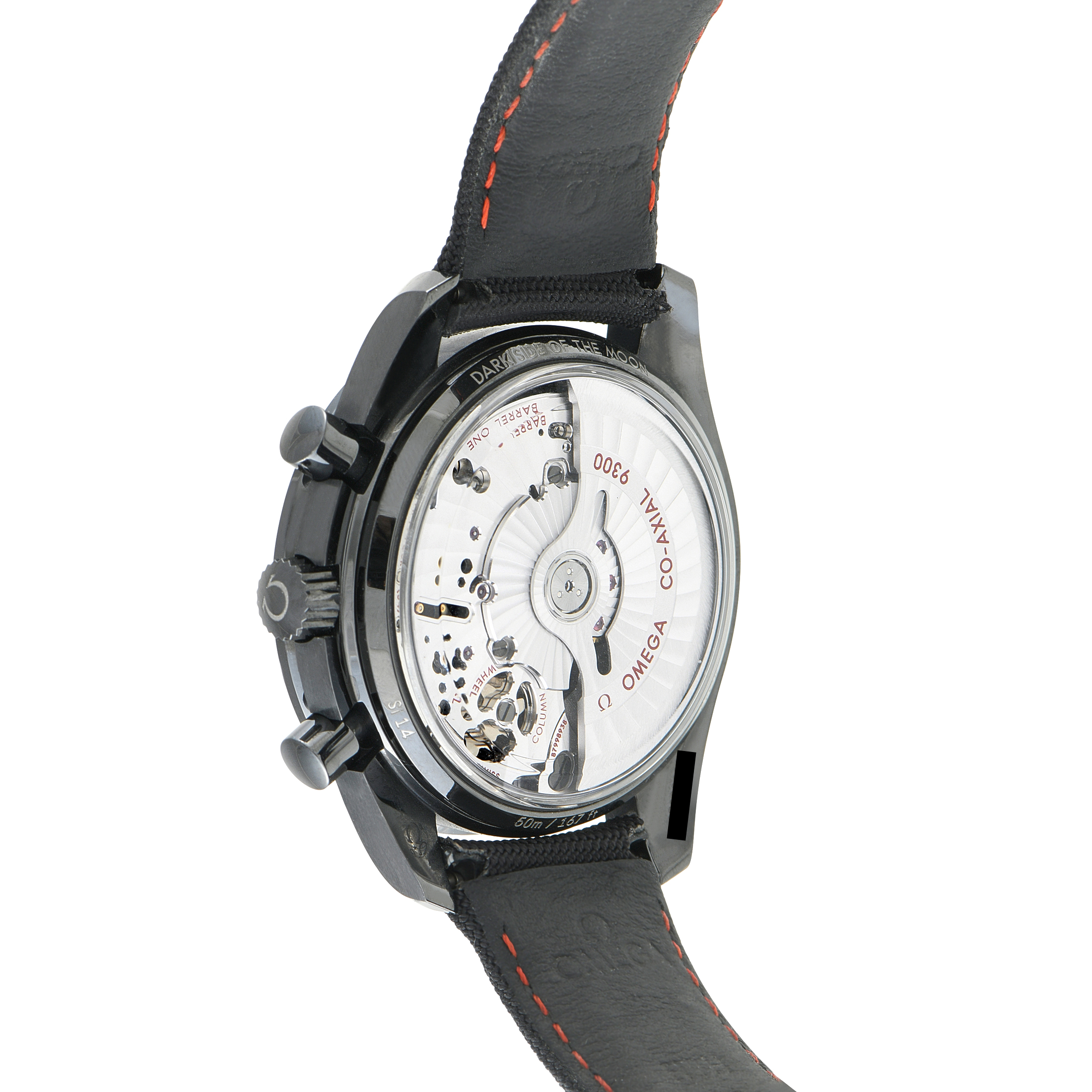 This is a pre-owned Omega Speedmaster Dark Side of the Moon Black Ceramic Watch 311.92.44.51.01.007. It is accompanied by papers and the manufacturer’s box.
