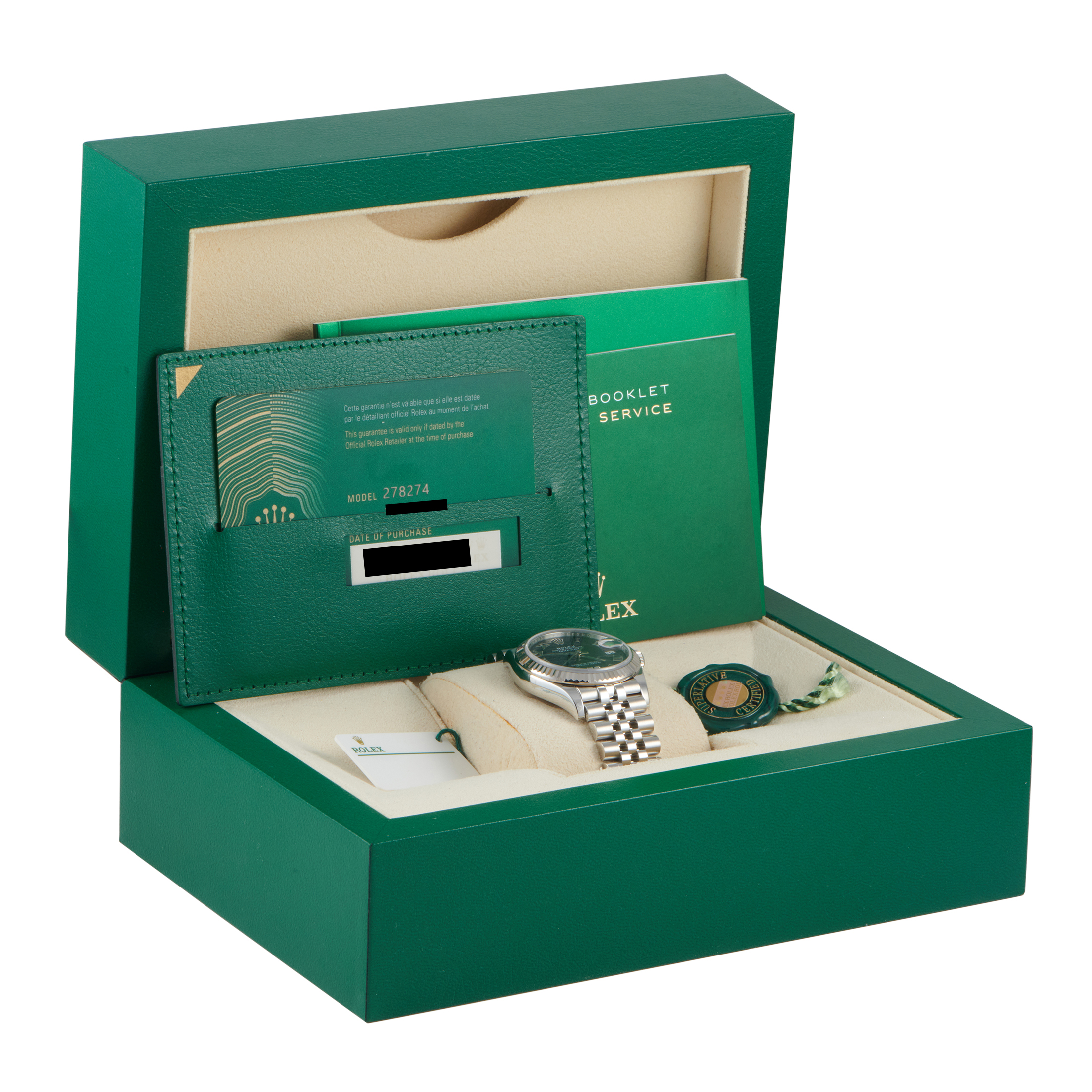 Powering the Rolex Datejust 31 ref.278274 is caliber 2236 self-winding mechanical movement with a precision of -2/+2 sec/day and approximately 55 hours of power reserve.