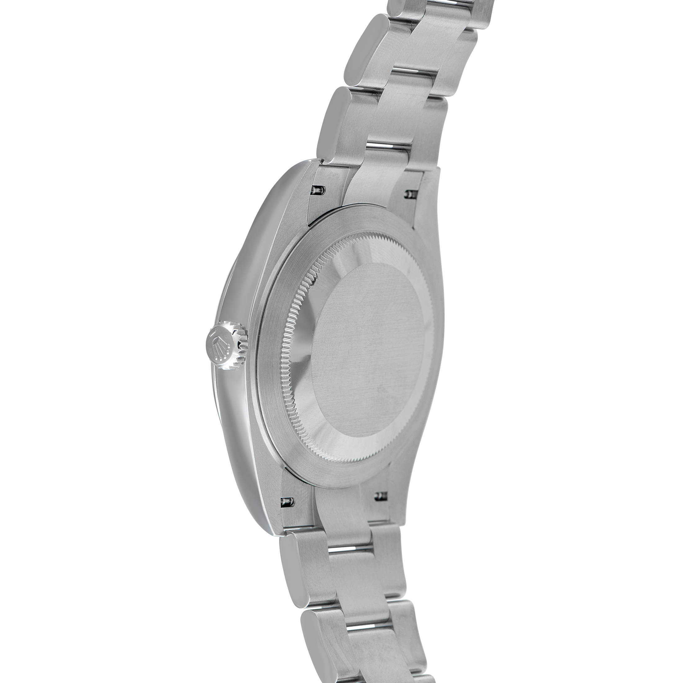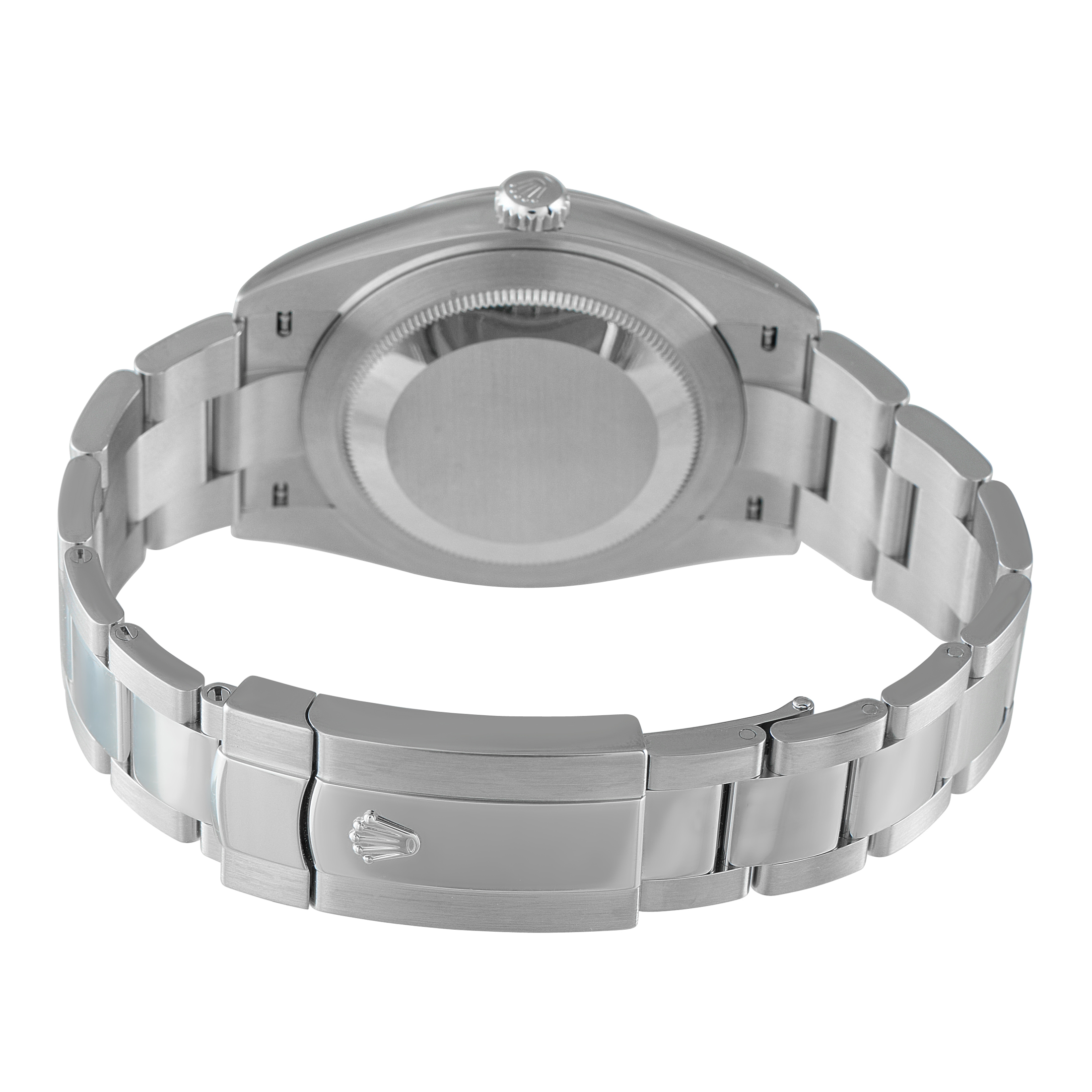 Ref. 126300 is the simplest version of the Datejust 41. With a classic smooth steel bezel, it can fly under the radar more easily than variants with fluted bezels. The bracelet and case are made of Oystersteel, Rolex’s brand name for their 904L stainless steel. The Datejust 41 is offered in a variety of dial colors, and it remains one of the most consistently popular men’s Rolex watches. Its caliber 3235 movement guarantees accuracy within 2 seconds per day, with 70 hours of power reserve.