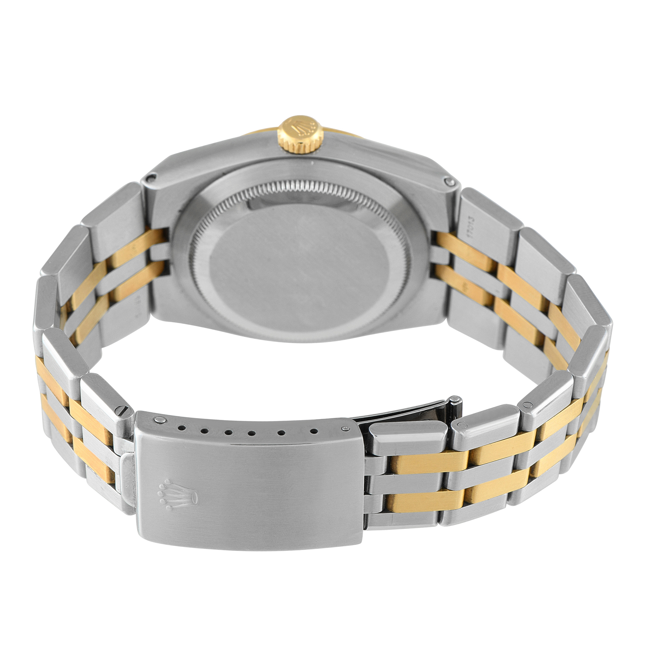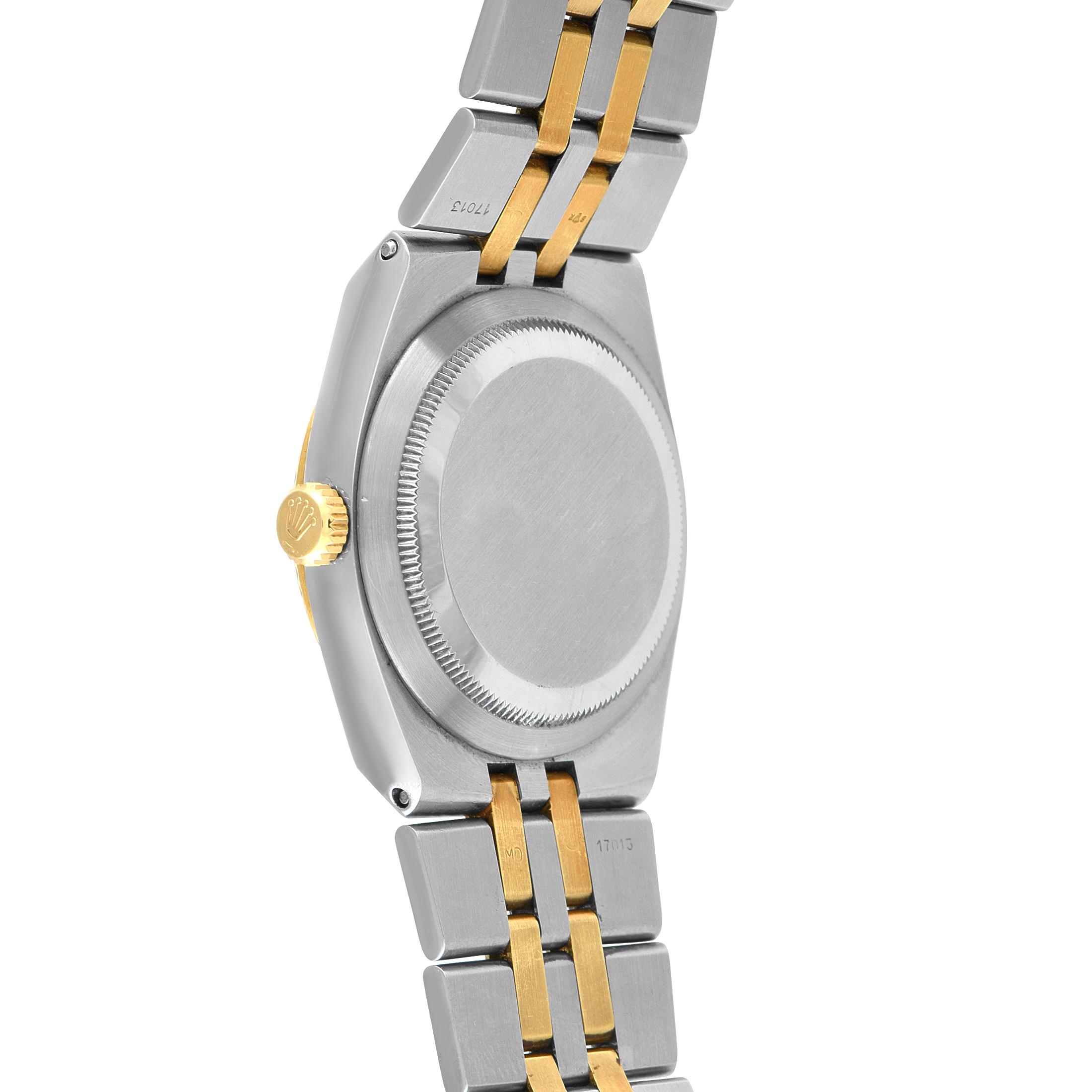 This pre-owned Rolex Datejust Oysterquartz Two-Tone Watch 17013 is presented in a gift box.