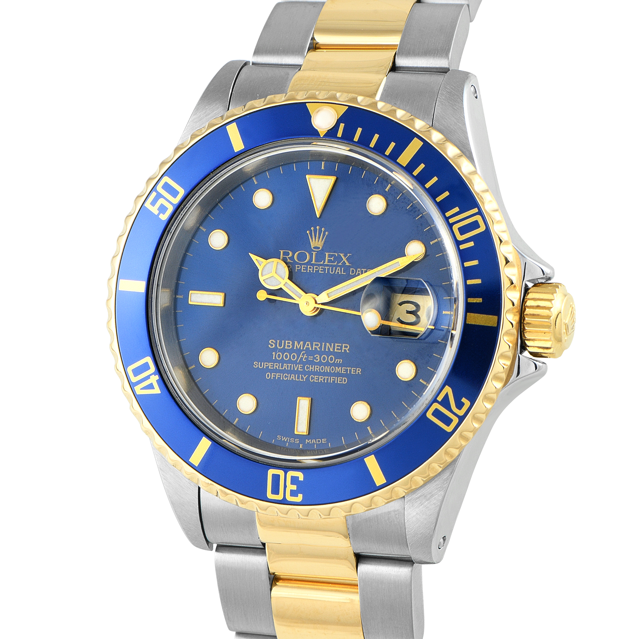 The Rolex Submariner Date ref. 126613LB, with a blue Cerachrom bezel and a blue dial, is a watch built for the depths yet designed to also stand out on land. It has a two-tone construction, featuring an 18K yellow gold knurled bezel, crown, and bracelet center links, paired with a 41mm Oystersteel case, lugs, and bracelet outer links. It is powered by caliber 3235, an automatic time-and-date movement with a Superlative Chronometer rating of −2/+2 seconds per day. Backed by 70 hours of stored energy, it offers lasting reliability between wears.