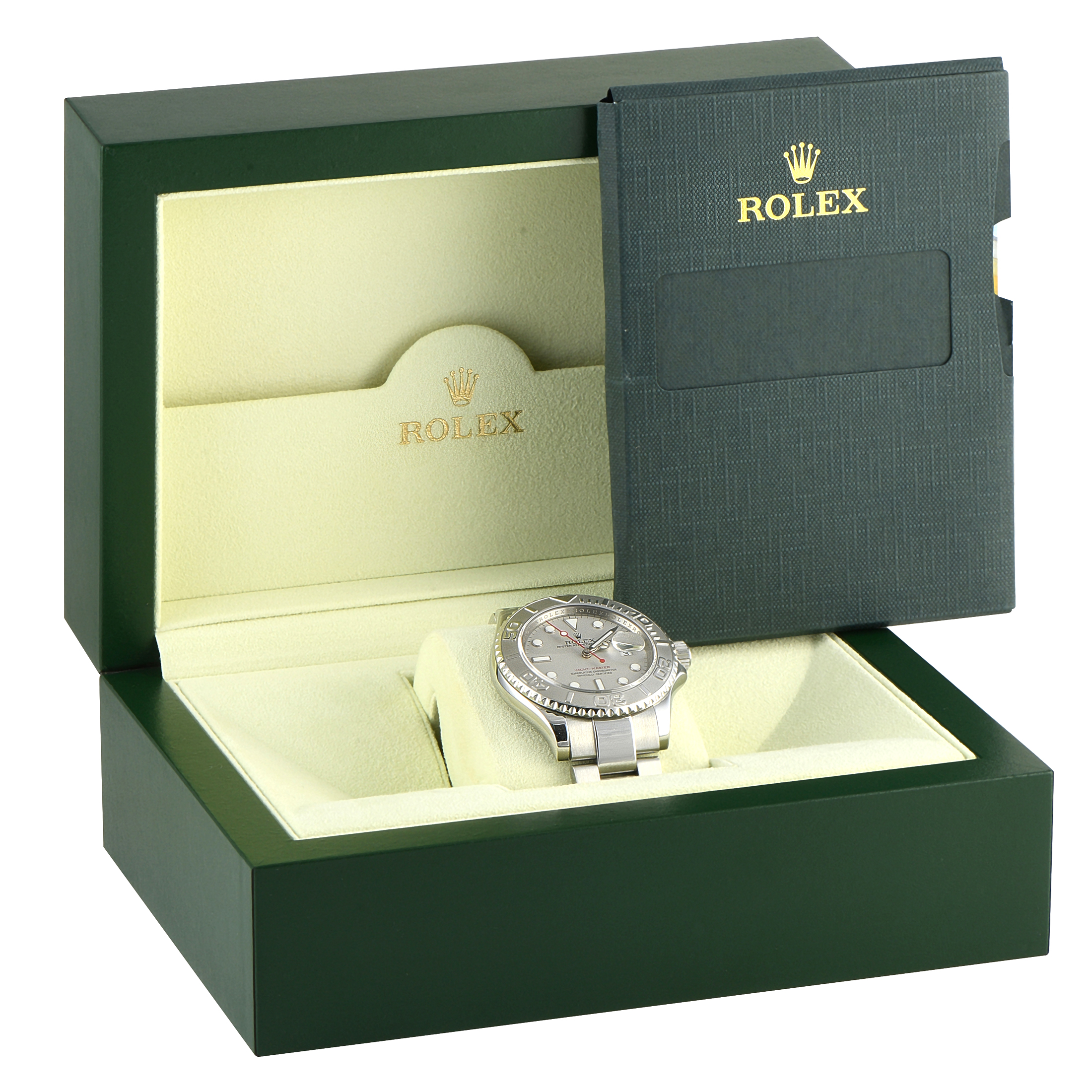 This is a pre-owned Rolex Yacht-Master 40 Platinum Dial Rolesium Watch 16622. It comes with the manufacturer’s box.
